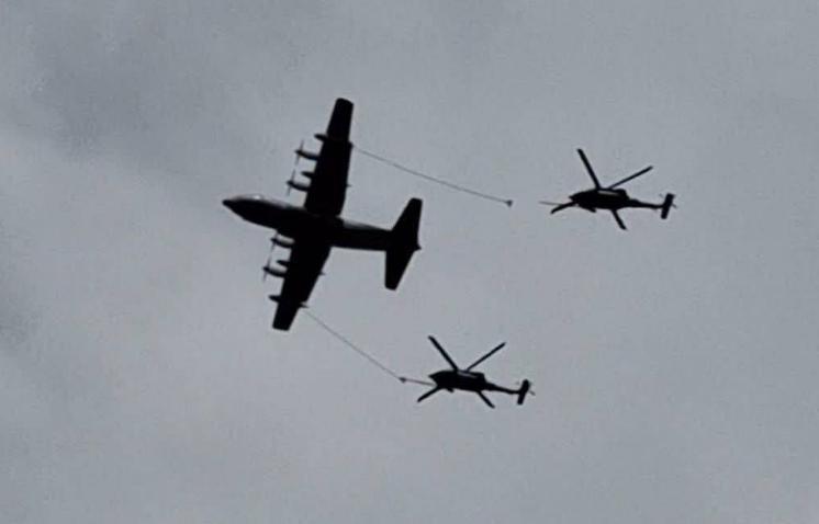 ▲美军加油机为“黑鹰”直升机加油