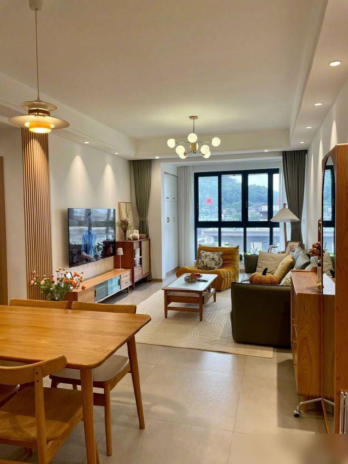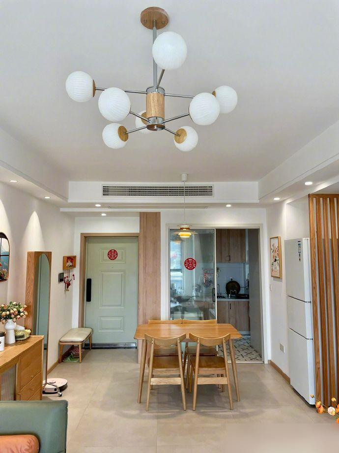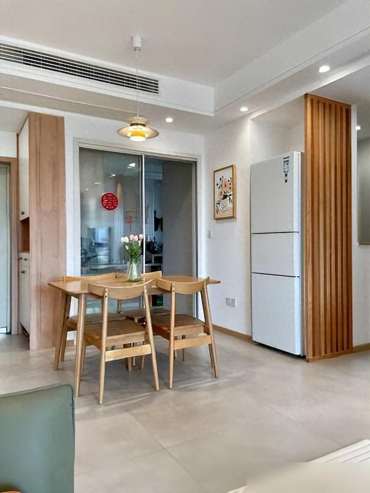 客餐厅一体现在很常见,但这么小的空间里,家具少反而成了优势。一套餐桌椅就搞定用餐区,走动起来一点不碍事。这种布局,对于两口之家或者孩子还小的家庭,其实特别实用。
